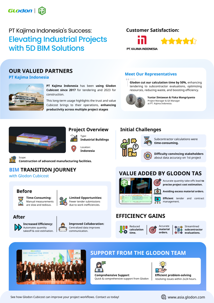Through Glodon’s Cubicost, Kajima Indonesia has transformed a challenging digital transition into a journey of success, efficiency, and industry leadership.